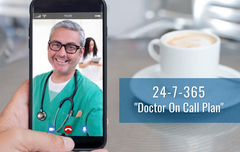 Our “24/7 Doctor on Call” Plan is about $1 a day. No Contracts. We provide our members and immediate family with UNLIMITED VIDEO & PHONE USAGE with NO other fees.